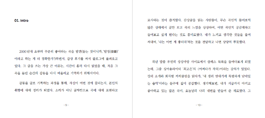 이 책을 통해 다른 누군가도 이런 멋진 곡을 접하게 되면 좋겠다고 생각합니다.