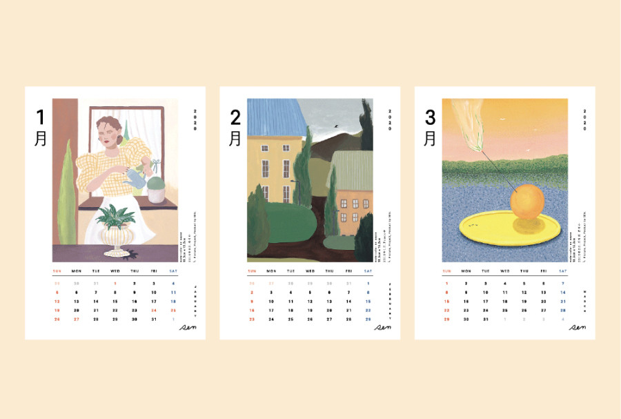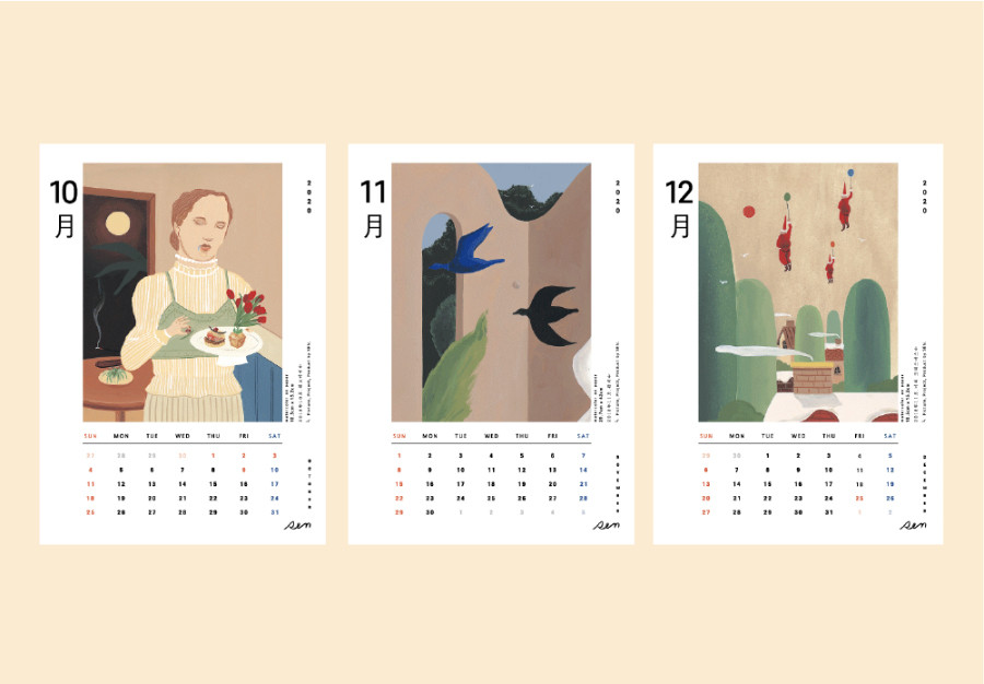 Sen의 월간엽서 일러스트들로 구성된 2020 달력 입니다.