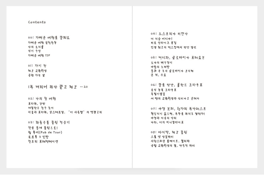 체코의 작은 동네 즐린으로 교환학생을 떠나 독일 예술가, 네덜란드 친구와의 만남, 1분 1초 아슬아슬했던 카우치 서핑의 경험과 150명의 외국인에게 불고기, 비빔밥과 강남스타일을 알리는 등 교환학생만이 할 수 있는 생생한 경험과 현지인과의 다양한 인연으로 만난 유럽 여행을 소개한다.