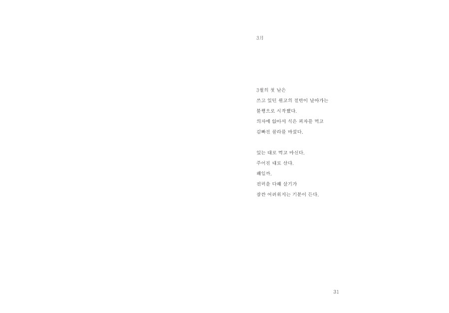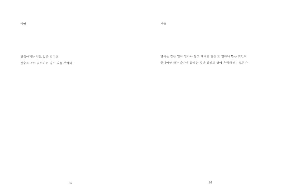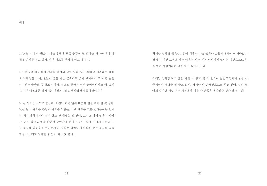 겨울에서 봄을 넘어가는 시간을 보내며 써 내려간 사적인 말들이 누군가에게는 하루를 버틸 수 있는 정도의 힘이 되기를 바랍니다.