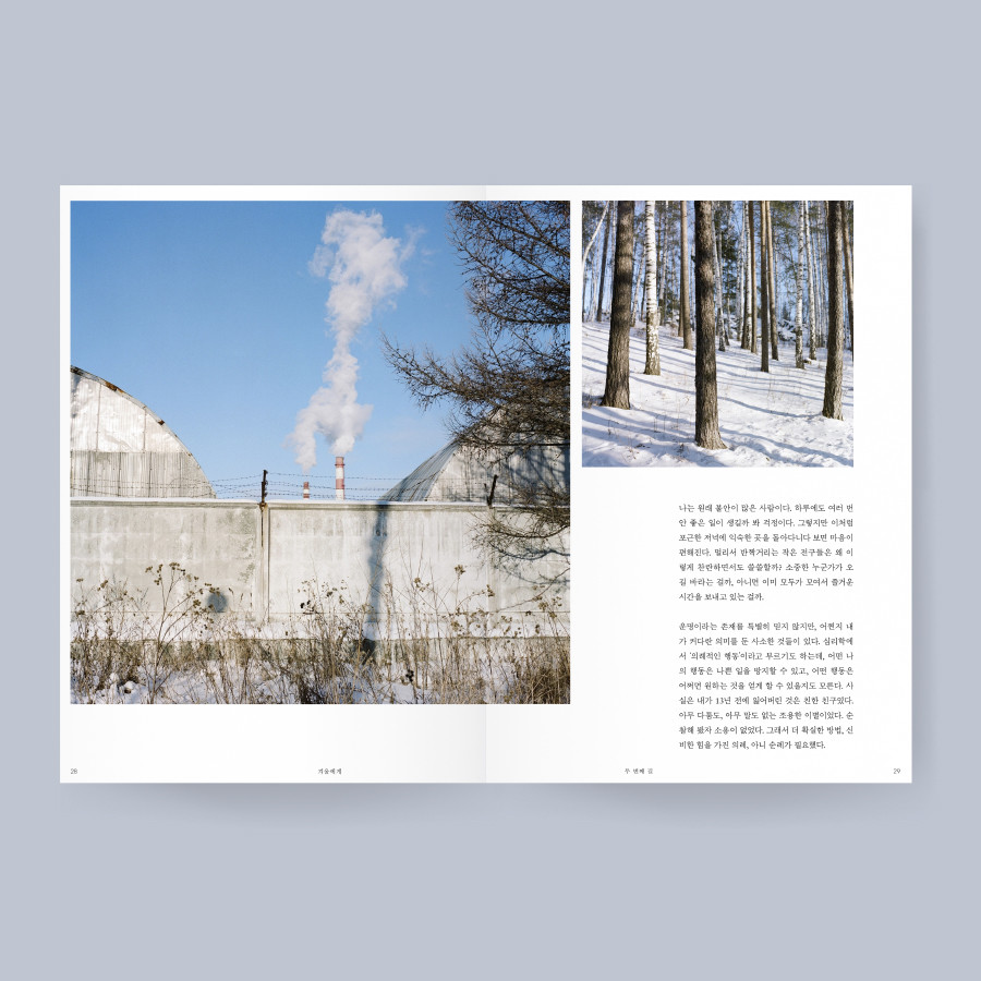 한때 폐쇄도시였던 러시아 노보우랄스크는 여전히 출입이 제한적이다. 몇 년만에 고향을 찾은 로만 페르미코프는 이 도시에서 나고 자랐음에도 불구하고 오랜 부재로 인해 출입증 갱신이 어렵다는 소식을 듣는다. 마지막 방문이 될지도 모른다는 생각이 엄습하자 그는 필름 카메라를 들고 뜻밖의 순례의 길에 오른다. 어쩌면 다시는 돌아오지 못할 유년의 도시에서 그는 핫셀블라드의 깊고 투명한 뷰파인더를 통해 소년의 기억을 들여다본다. 한겨울의 대지 위에 뻗은 세 갈래의 순례 길에서 복원한 기억과 감정의 무늬는 다시 종이 위에 하얗게 펼쳐진다.