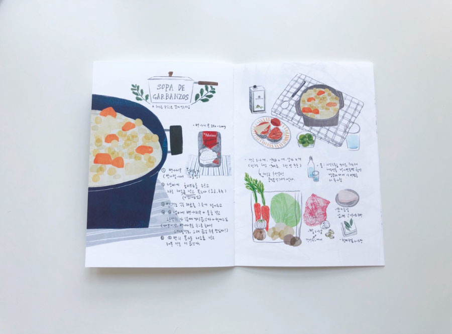 2년동안 스페인에서 살면서 경험한 스페인 요리 중 누구라도 쉽게, 한국에서 구할 수 있는 재료로 만드는 간단한 스페인 가정식 8개를 담은 요리그림책입니다.