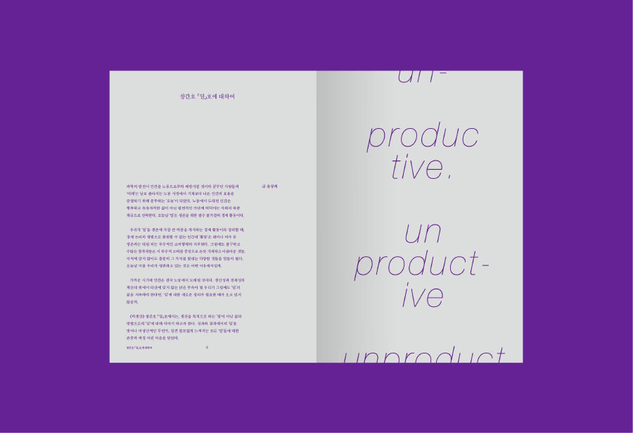 『비생산』에서는 창작에 관한 모든 과정을 다루며, 일견 비생산적이라고 생각되는 것과 그러한 행위를 하는 사람들에 대한 이야기를 담고자 하였습니다.