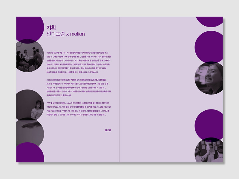 2016년 늦가을에는 1호, 2017년 초여름 2호 이후 몇 번의 환절기를 거쳐 마침내 2018년 12월 3호를 출간하게 되었습니다. 단순한 정보 제공이 아닌 독립영화를 둘러싼 사람들 간 공감대를 형성하고 교감할 수 있는 매체로 거듭나고자 했던 시작할 때의 감정을 되새기며, 앞으로 더 나아가고 싶은 마음으로 준비한 3호입니다.