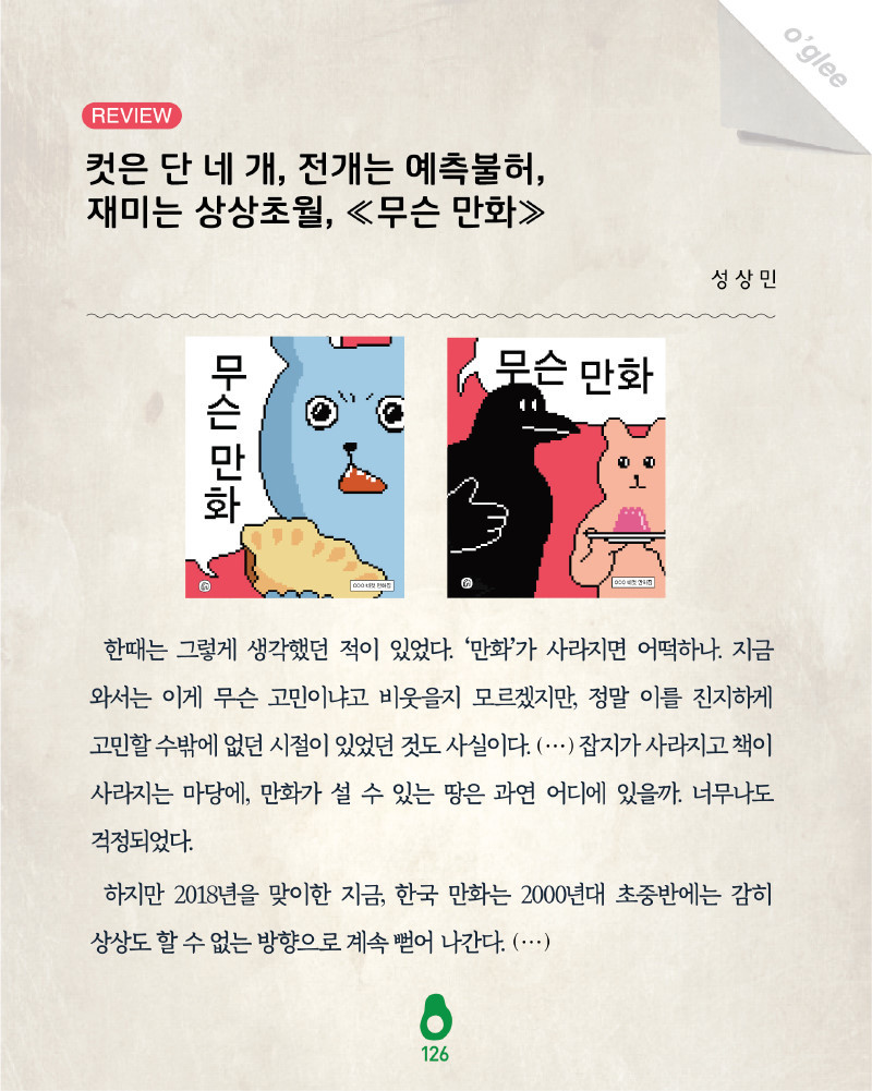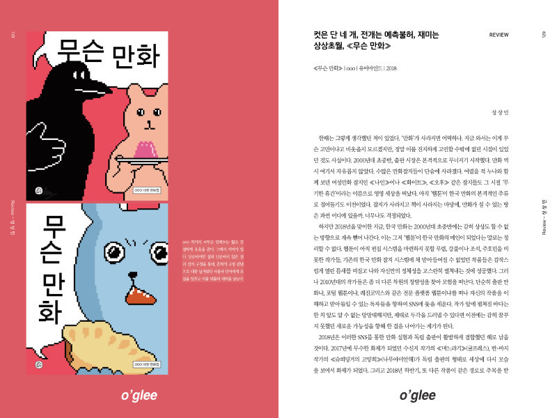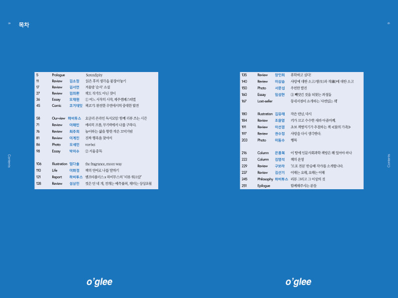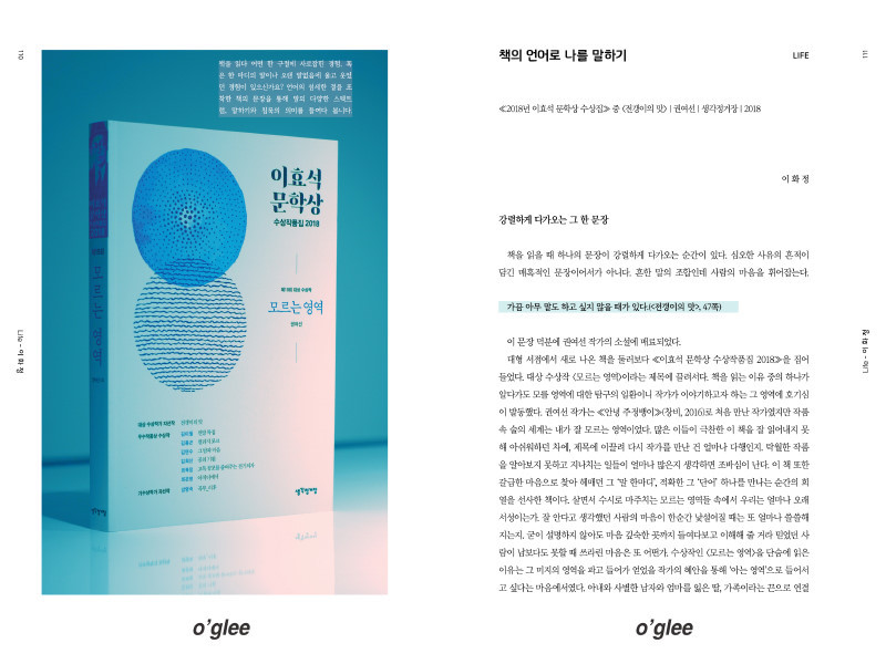 <o’glee> 오글리 는 책과 사람에 대한 다채로운 이야기를 담은 ‘리뷰 매거진 ‘입니다.