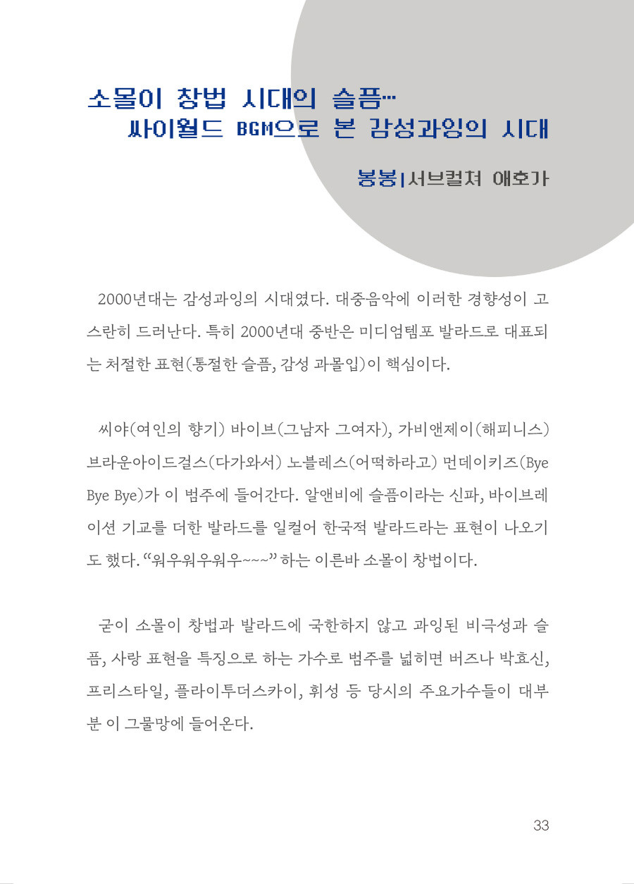 3. Critique 소몰이 창법 시대의 슬픔...싸이월드 BGM 으로 본 감성과잉의 시대 | 봉봉