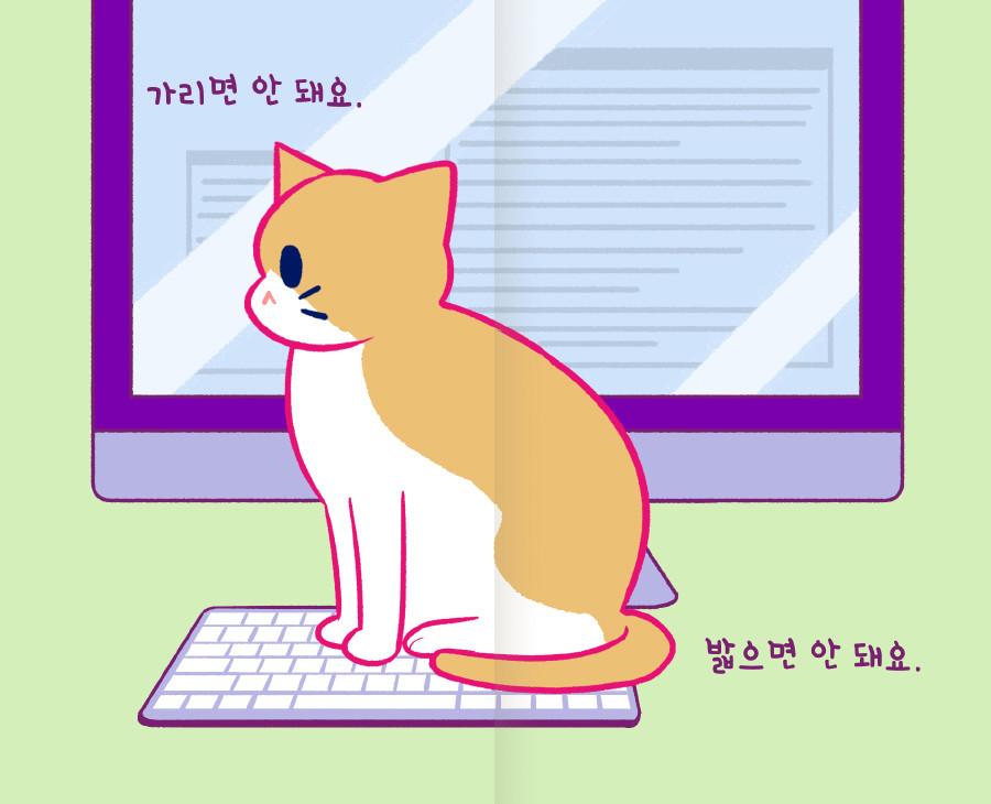 귀댁의 야옹 씨께서 아직 한글 읽기 실력이 미흡하다면 집사님께서 직접 야옹북을 읽어주시길 권장합니다!