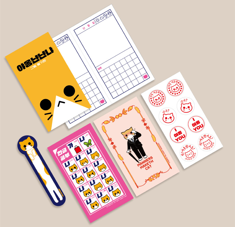 부록: 전용 북 케이스 , 미니 그림 일기장, 미니 포스터 2장, ‘야옹했어요’ 스티커 1장, 책갈피 1종