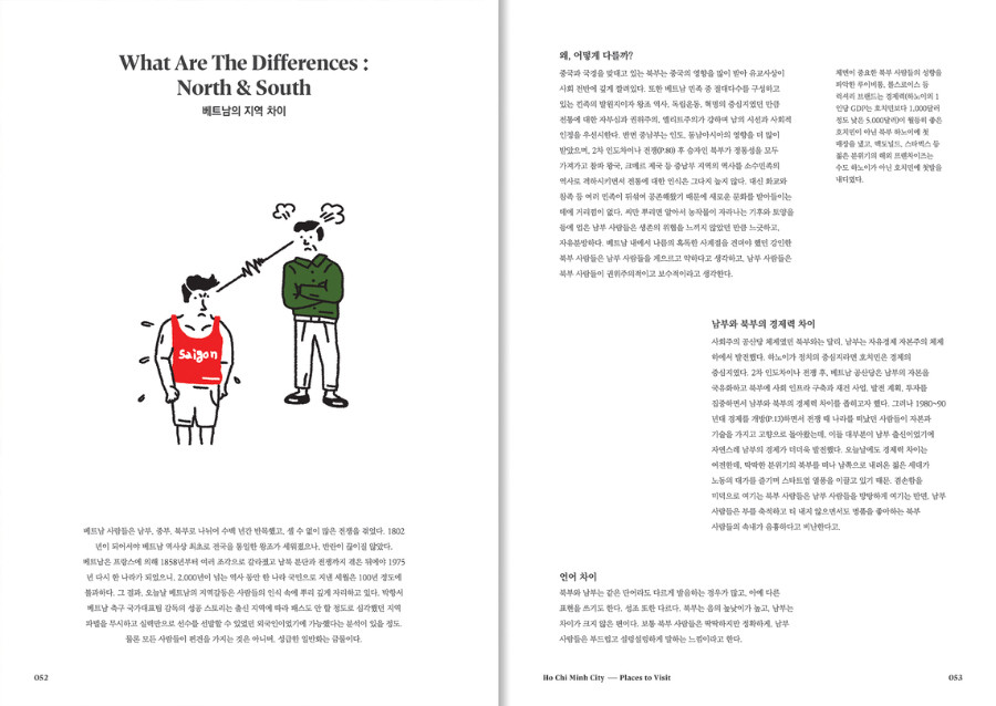 베트남을 이해하기 위한 키워드 중 하나는 바로 역사적, 지리적으로 분열된 남과 북의 차이입니다. 「너를 위한, 호치민」에서는 기후와 사람들의 성향, 경제, 언어, 음식 문화 등에서 나타나는 남과 북의 차이를 다룹니다.